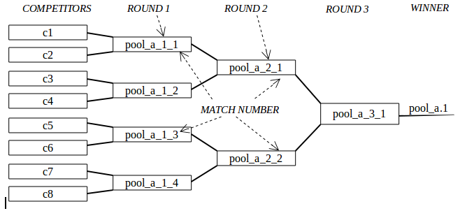 tells that this is a knock-out pool whose name is “rep_a”. The first competitor is “pool_a_2_1.1.p.2”. Let's divide it into elements: